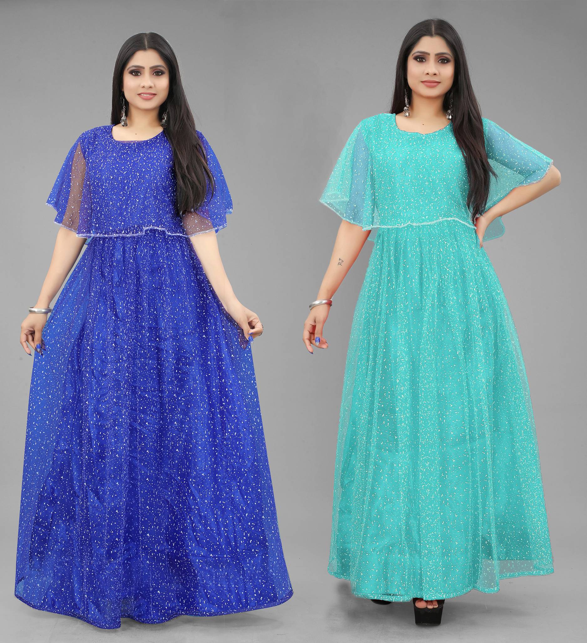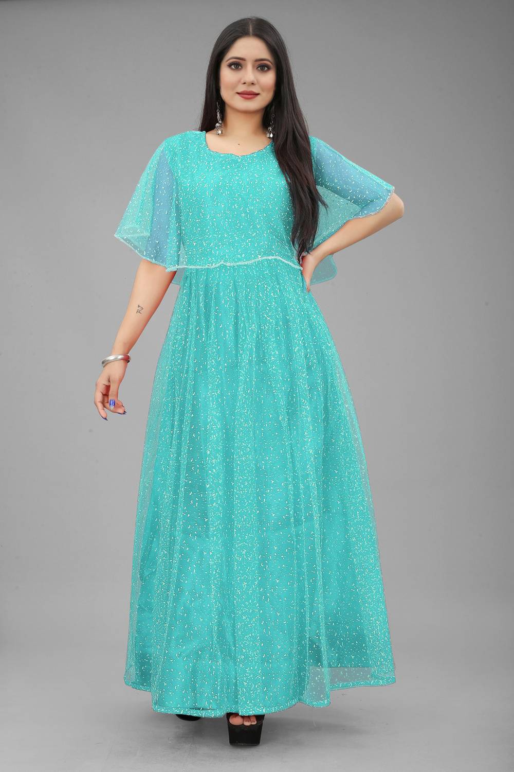 We offer high quality Range of Gowns that is designs by our team of creative professionals and at the same time perfect mix of modern patterns and contemporary designs Because of Fashion and Style always depends on good color and fantastic combination of shades so We are glad to Introduce our Beautiful and Elegance Floor Length semi-stitched Ball/Flared Gown which is Embellished with Fancy Rubber Dot over net Fabric. This Semi-Stitched Gown can be Fit as per your Requirement Having Beautiful Color and Attractive Designed Fabric for the Gown. Gown is Crafted with Rubber Print over Net Fabric that suits you Best. All of them Together will make your look more Attractive and eye-catching. Grab this class of crafting and wear it as per your choice at any occasion. This Ball/Flared Gown can be a perfect gift for your loved ones.