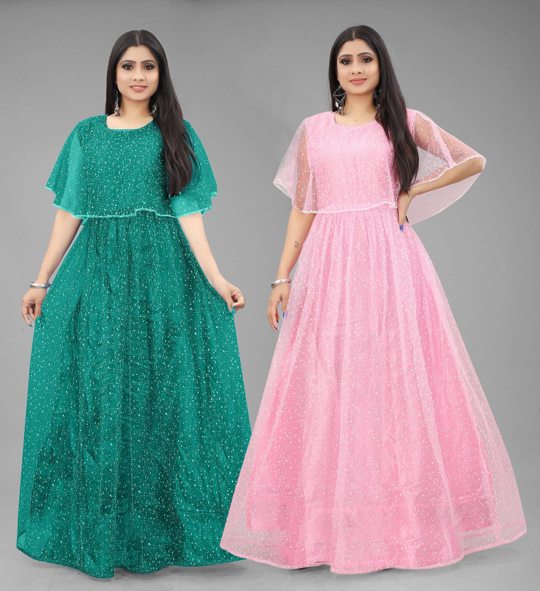 We offer high quality Range of Gowns that is designs by our team of creative professionals and at the same time perfect mix of modern patterns and contemporary designs Because of Fashion and Style always depends on good color and fantastic combination of shades so We are glad to Introduce our Beautiful and Elegance Floor Length semi-stitched Ball/Flared Gown which is Embellished with Fancy Rubber Dot over net Fabric. This Semi-Stitched Gown can be Fit as per your Requirement Having Beautiful Color and Attractive Designed Fabric for the Gown. Gown is Crafted with Rubber Print over Net Fabric that suits you Best. All of them Together will make your look more Attractive and eye-catching. Grab this class of crafting and wear it as per your choice at any occasion. This Ball/Flared Gown can be a perfect gift for your loved ones.