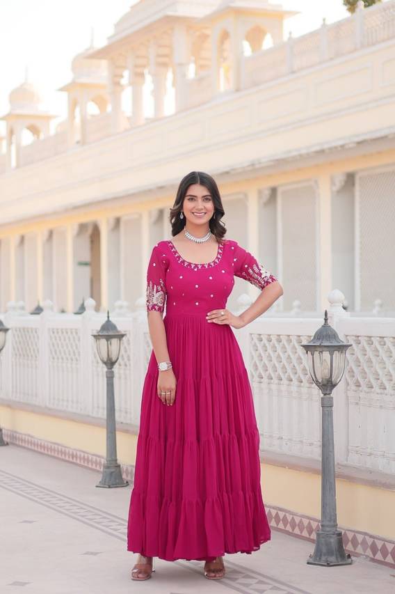 We offer high quality Range of Gowns that is designs by our team of creative professionals and at the same time perfect mix of modern patterns and contemporary designs Because of Fashion and style always depends on good color and fantastic combination of shades so We are glad to Introduce our Beautiful and Elegance Floor Length semi-stitched Ball Gown which is Emblished with Fancy Abstract over net Fabric. This Semi-Stitched Gown can be Fit as per your Requirement Having Beautiful Color and Attractive Designed Fabric for the Gown. Gown is Crafted with Butterfly over Net Fabric that suits you Best. All of them Together will make your look more Attractive and eye catching. Grab this class of crafting and wear it as per your choice at any occasion. This Ball Flared Gown can be a perfect gift for your loved ones. Creative Combo Offer for Best Chosen Color. it suits you best for any Occasions like Part Wear,Ceremony Wear,Wedding Wear,Offce Wear