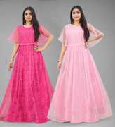 DECOFIN Self Design, Embellished Net Semi Stitched Flared/A-line Gown (Pink, Black)