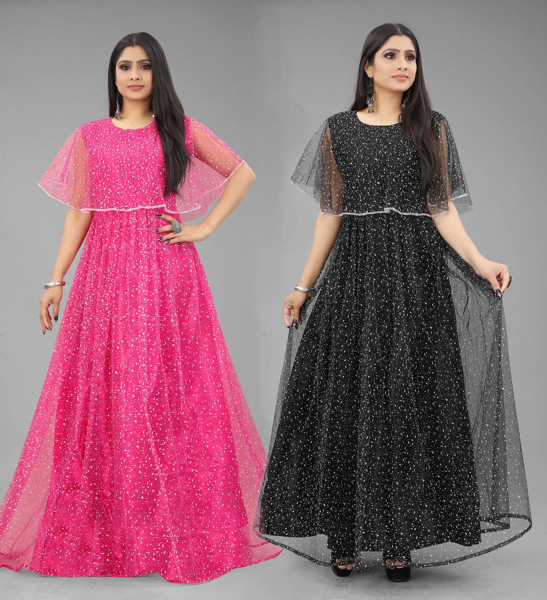 We offer high quality Range of Gowns that is designs by our team of creative professionals and at the same time perfect mix of modern patterns and contemporary designs Because of Fashion and Style always depends on good color and fantastic combination of shades so We are glad to Introduce our Beautiful and Elegance Floor Length semi-stitched Ball/Flared Gown which is Embellished with Fancy Rubber Dot over net Fabric. This Semi-Stitched Gown can be Fit as per your Requirement Having Beautiful Color and Attractive Designed Fabric for the Gown. Gown is Crafted with Rubber Print over Net Fabric that suits you Best. All of them Together will make your look more Attractive and eye-catching. Grab this class of crafting and wear it as per your choice at any occasion. This Ball/Flared Gown can be a perfect gift for your loved ones.