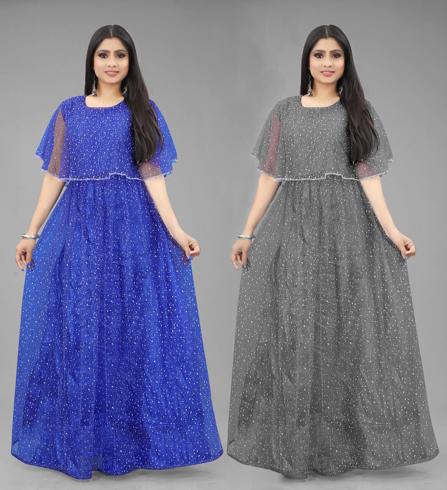 We offer high quality Range of Gowns that is designs by our team of creative professionals and at the same time perfect mix of modern patterns and contemporary designs Because of Fashion and Style always depends on good color and fantastic combination of shades so We are glad to Introduce our Beautiful and Elegance Floor Length semi-stitched Ball/Flared Gown which is Embellished with Fancy Rubber Dot over net Fabric. This Semi-Stitched Gown can be Fit as per your Requirement Having Beautiful Color and Attractive Designed Fabric for the Gown. Gown is Crafted with Rubber Print over Net Fabric that suits you Best. All of them Together will make your look more Attractive and eye-catching. Grab this class of crafting and wear it as per your choice at any occasion. This Ball/Flared Gown can be a perfect gift for your loved ones.