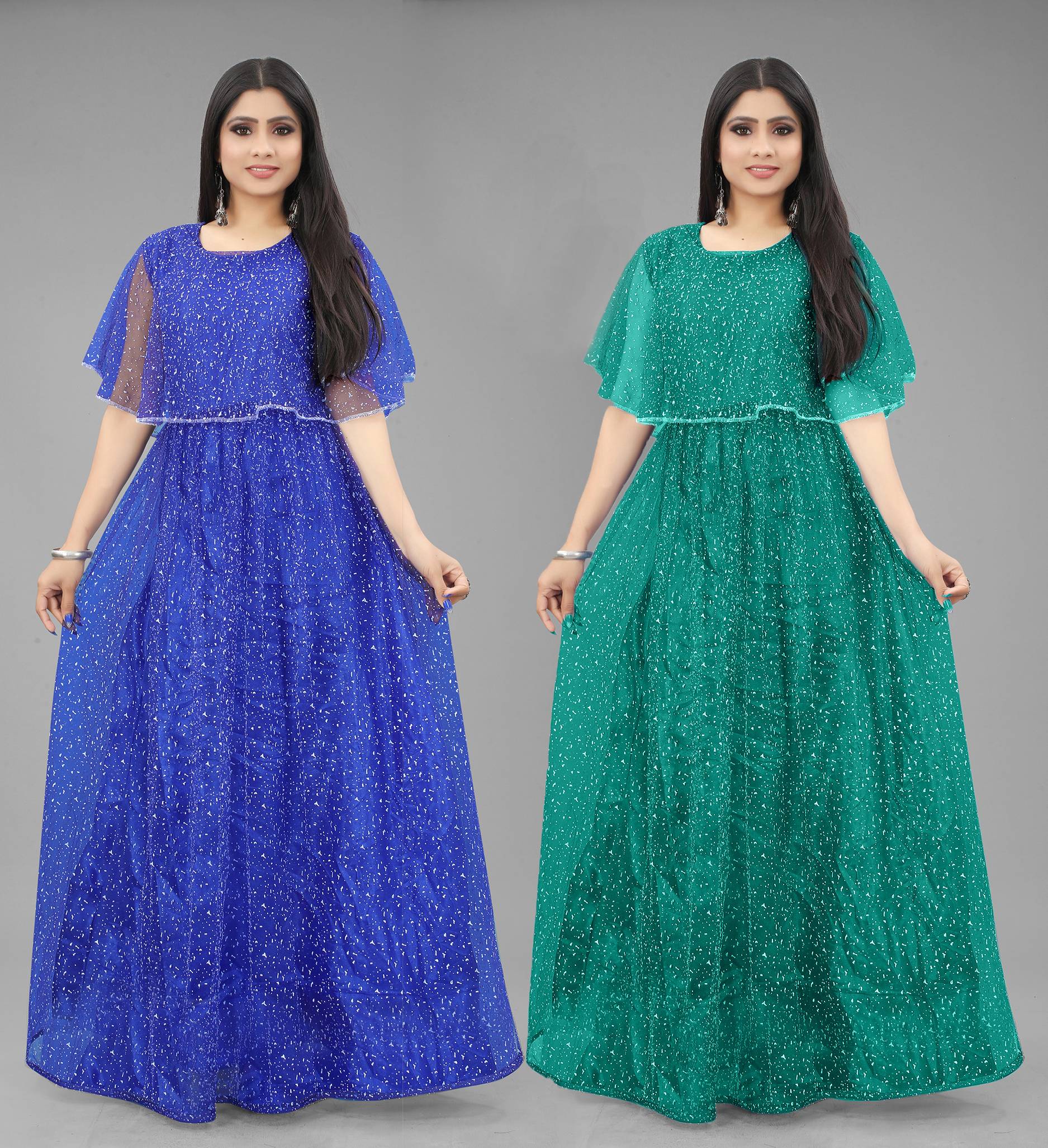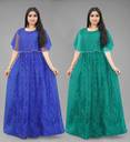 We offer high quality Range of Gowns that is designs by our team of creative professionals and at the same time perfect mix of modern patterns and contemporary designs Because of Fashion and Style always depends on good color and fantastic combination of shades so We are glad to Introduce our Beautiful and Elegance Floor Length semi-stitched Ball/Flared Gown which is Embellished with Fancy Rubber Dot over net Fabric. This Semi-Stitched Gown can be Fit as per your Requirement Having Beautiful Color and Attractive Designed Fabric for the Gown. Gown is Crafted with Rubber Print over Net Fabric that suits you Best. All of them Together will make your look more Attractive and eye-catching. Grab this class of crafting and wear it as per your choice at any occasion. This Ball/Flared Gown can be a perfect gift for your loved ones.