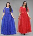 DECOFIN Self Design, Embellished Net Semi Stitched Flared/A-line Gown (Blue, Red)