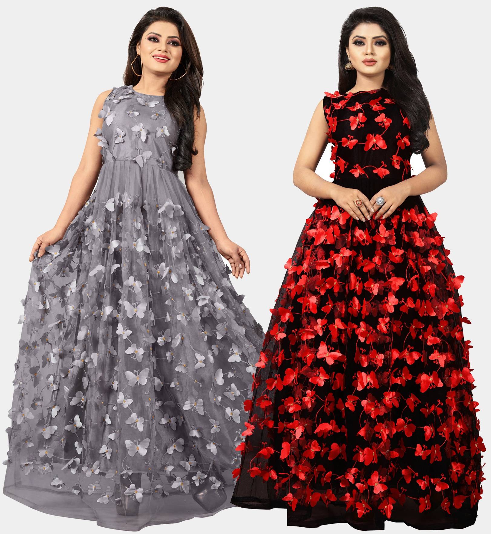 We offer high quality Range of Gowns that is designs by our team of creative professionals and at the same time perfect mix of modern patterns and contemporary designs Because of Fashion and style always depends on good color and fantastic combination of shades so We are glad to Introduce our Beautiful and Elegance Floor Length semi-stitched Ball Gown which is Emblished with Fancy Abstract over net Fabric. This Semi-Stitched Gown can be Fit as per your Requirement Having Beautiful Color and Attractive Designed Fabric for the Gown. Gown is Crafted with Butterfly over Net Fabric that suits you Best. All of them Together will make your look more Attractive and eye catching. Grab this class of crafting and wear it as per your choice at any occasion. This Ball Flared Gown can be a perfect gift for your loved ones. Creative Combo Offer for Best Chosen Color. it suits you best for any Occasions like Part Wear,Ceremony Wear,Wedding Wear,Offce Wear