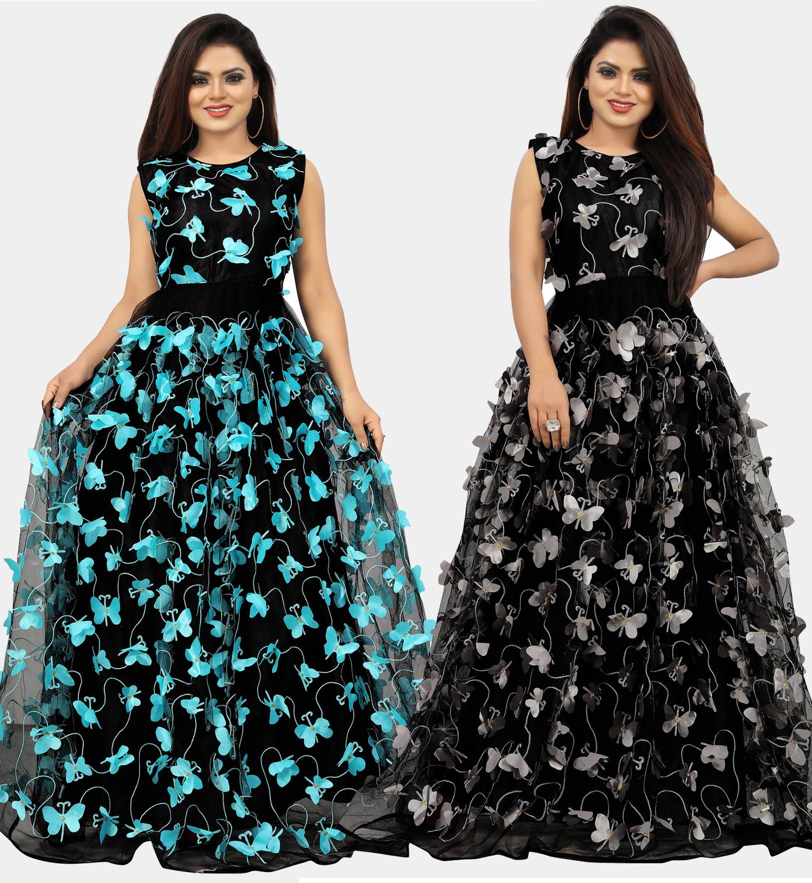 We offer high quality Range of Gowns that is designs by our team of creative professionals and at the same time perfect mix of modern patterns and contemporary designs Because of Fashion and style always depends on good color and fantastic combination of shades so We are glad to Introduce our Beautiful and Elegance Floor Length semi-stitched Ball Gown which is Emblished with Fancy Abstract over net Fabric. This Semi-Stitched Gown can be Fit as per your Requirement Having Beautiful Color and Attractive Designed Fabric for the Gown. Gown is Crafted with Butterfly over Net Fabric that suits you Best. All of them Together will make your look more Attractive and eye catching. Grab this class of crafting and wear it as per your choice at any occasion. This Ball Flared Gown can be a perfect gift for your loved ones. Creative Combo Offer for Best Chosen Color. it suits you best for any Occasions like Part Wear,Ceremony Wear,Wedding Wear,Offce Wear