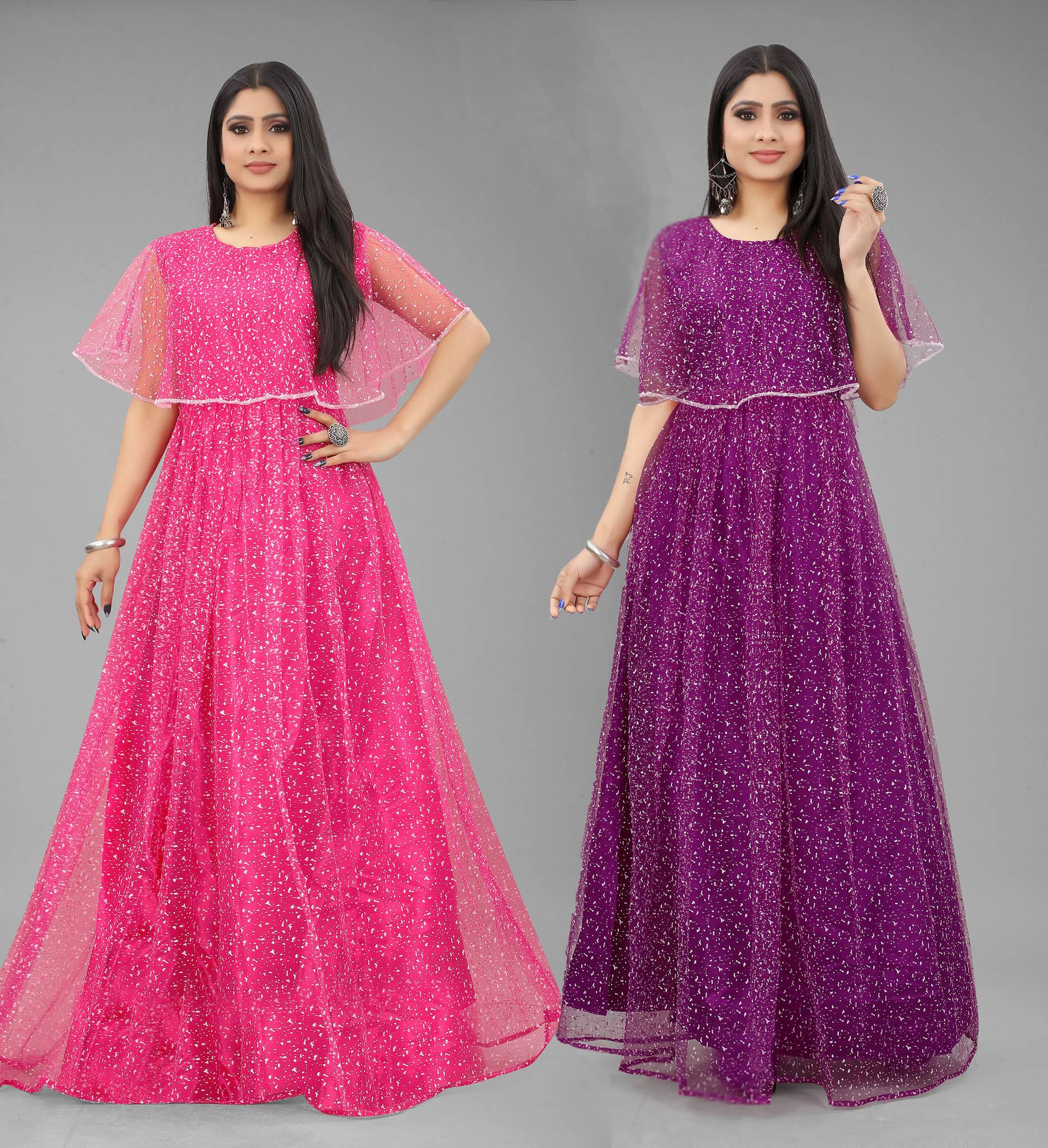 We offer high quality Range of Gowns that is designs by our team of creative professionals and at the same time perfect mix of modern patterns and contemporary designs Because of Fashion and Style always depends on good color and fantastic combination of shades so We are glad to Introduce our Beautiful and Elegance Floor Length semi-stitched Ball/Flared Gown which is Embellished with Fancy Rubber Dot over net Fabric. This Semi-Stitched Gown can be Fit as per your Requirement Having Beautiful Color and Attractive Designed Fabric for the Gown. Gown is Crafted with Rubber Print over Net Fabric that suits you Best. All of them Together will make your look more Attractive and eye-catching. Grab this class of crafting and wear it as per your choice at any occasion. This Ball/Flared Gown can be a perfect gift for your loved ones.