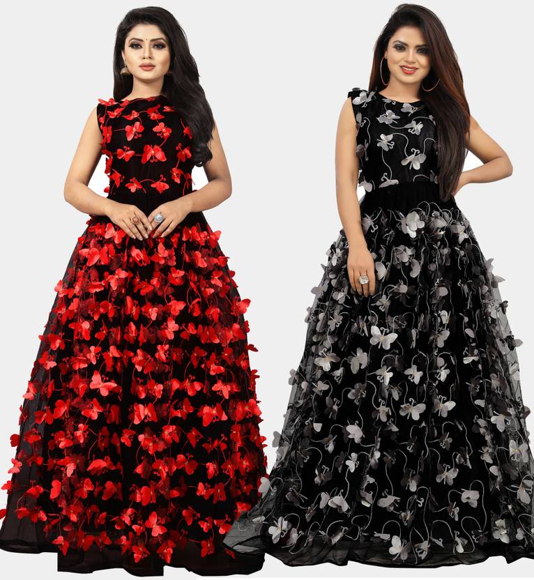 We offer high quality Range of Gowns that is designs by our team of creative professionals and at the same time perfect mix of modern patterns and contemporary designs Because of Fashion and style always depends on good color and fantastic combination of shades so We are glad to Introduce our Beautiful and Elegance Floor Length semi-stitched Ball Gown which is Emblished with Fancy Abstract over net Fabric. This Semi-Stitched Gown can be Fit as per your Requirement Having Beautiful Color and Attractive Designed Fabric for the Gown. Gown is Crafted with Butterfly over Net Fabric that suits you Best. All of them Together will make your look more Attractive and eye catching. Grab this class of crafting and wear it as per your choice at any occasion. This Ball Flared Gown can be a perfect gift for your loved ones. Creative Combo Offer for Best Chosen Color. it suits you best for any Occasions like Part Wear,Ceremony Wear,Wedding Wear,Offce Wear
