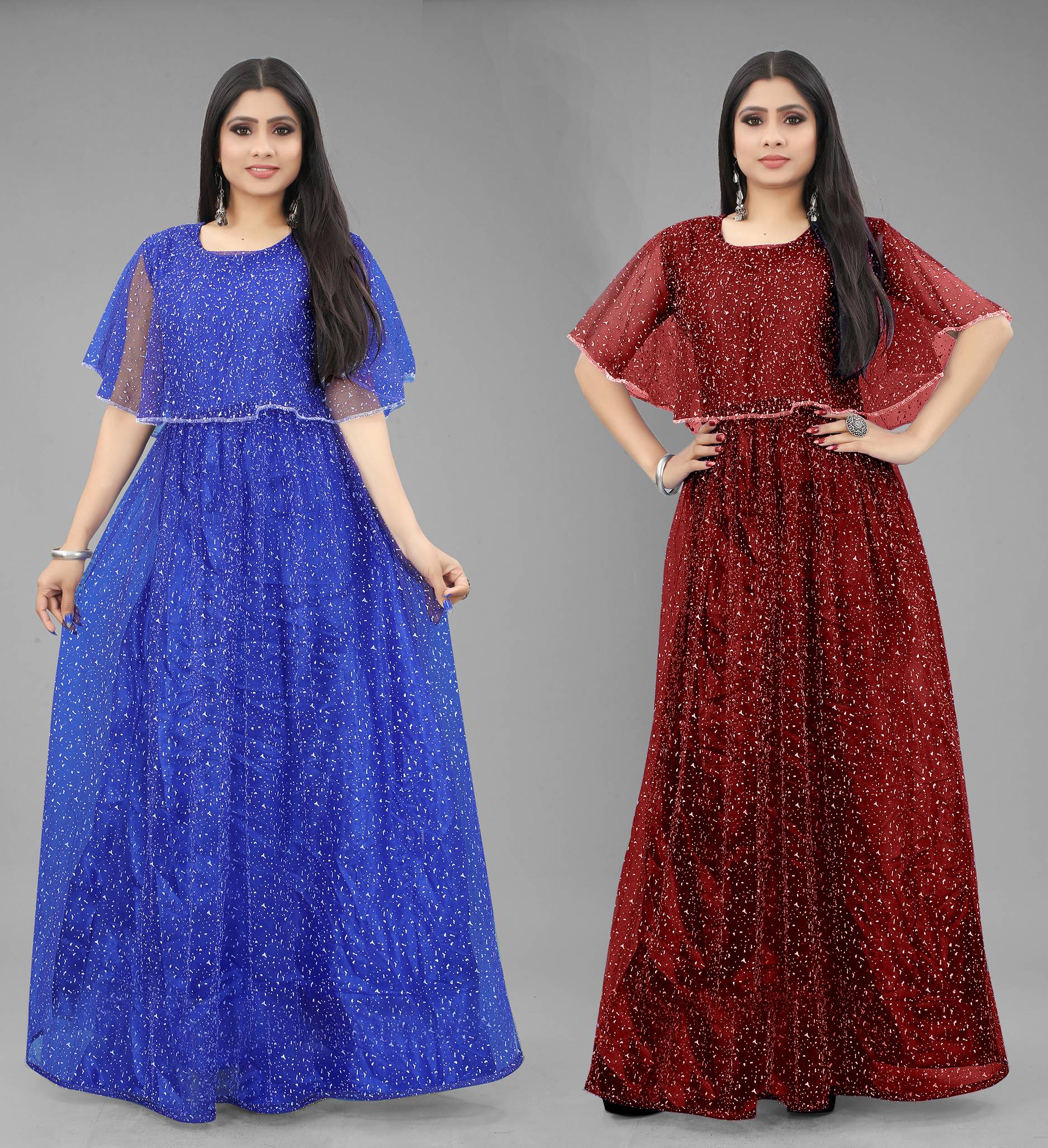 We offer high quality Range of Gowns that is designs by our team of creative professionals and at the same time perfect mix of modern patterns and contemporary designs Because of Fashion and Style always depends on good color and fantastic combination of shades so We are glad to Introduce our Beautiful and Elegance Floor Length semi-stitched Ball/Flared Gown which is Embellished with Fancy Rubber Dot over net Fabric. This Semi-Stitched Gown can be Fit as per your Requirement Having Beautiful Color and Attractive Designed Fabric for the Gown. Gown is Crafted with Rubber Print over Net Fabric that suits you Best. All of them Together will make your look more Attractive and eye-catching. Grab this class of crafting and wear it as per your choice at any occasion. This Ball/Flared Gown can be a perfect gift for your loved ones.