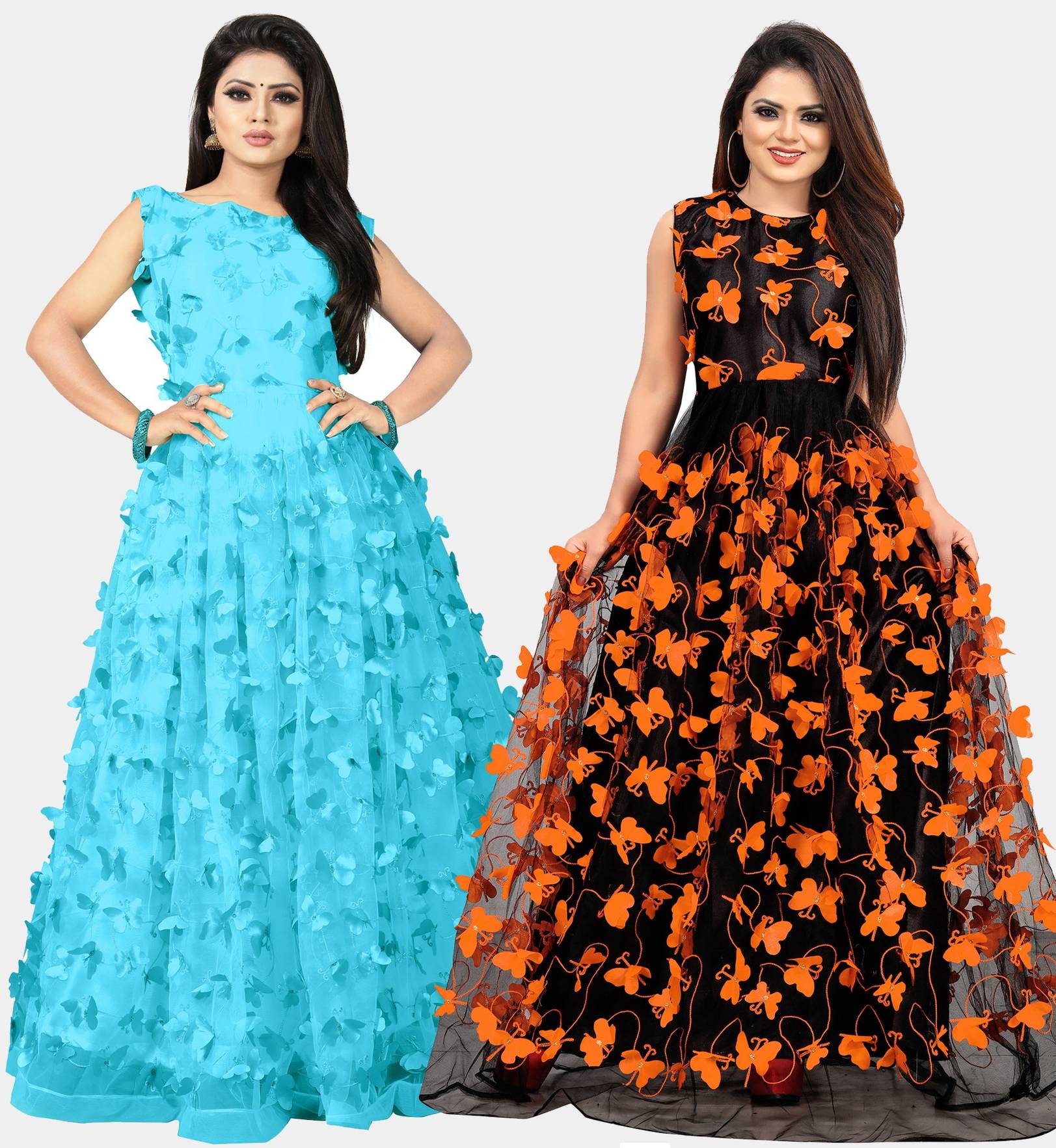 We offer high quality Range of Gowns that is designs by our team of creative professionals and at the same time perfect mix of modern patterns and contemporary designs Because of Fashion and style always depends on good color and fantastic combination of shades so We are glad to Introduce our Beautiful and Elegance Floor Length semi-stitched Ball Gown which is Emblished with Fancy Abstract over net Fabric. This Semi-Stitched Gown can be Fit as per your Requirement Having Beautiful Color and Attractive Designed Fabric for the Gown. Gown is Crafted with Butterfly over Net Fabric that suits you Best. All of them Together will make your look more Attractive and eye catching. Grab this class of crafting and wear it as per your choice at any occasion. This Ball Flared Gown can be a perfect gift for your loved ones. Creative Combo Offer for Best Chosen Color. it suits you best for any Occasions like Part Wear,Ceremony Wear,Wedding Wear,Offce Wear