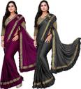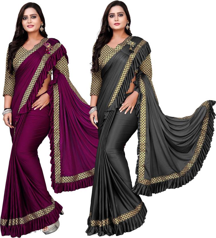DECOFIN Woven, Solid/Plain Bollywood Lycra Blend Saree (Pack of 2, Purple, Grey)