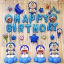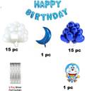 decokart Doremon theme birthday combo-13 pc happy birthday foil,2 curtain,1 moon,30 balloon,2 doreamon foil. pack of 47 (Set of 47)