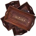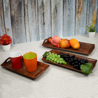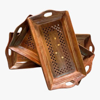 DECORASIA Beautiful Handmade antique wooden Tray (Pack of 3, Microwave Safe)