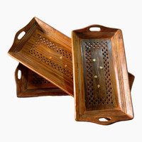 Bringing a touch of elegance to any setting, these trays grab attention with their refined aesthetics. The warm wooden tones exude a natural charm that complements various decor styles, from rustic to modern. Intricately designed with elegant cutouts, these trays are sophisticated pieces. The subtle metallic details add a hint of luxury, enhancing their visual appeal.