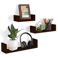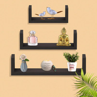 DECORASIA U Shaped Floating Black MDF (Medium Density Fiber) Wall Shelf (Number of Shelves - 3, Black)