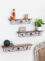 Owing to their design, these wall shelves effortlessly blend aesthetics with functionality. The beautiful metal curves intricately complement the warm tones of these wooden shelves, creating a visually appealing piece of furniture. This combination adds a touch of elegance to any room and enhances the overall decor.