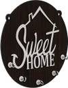 DecorHouse Premium Sweet Home Wooden Key Holder for Home and Office Decor Wood Key Holder (5 Hooks, Brown, White)