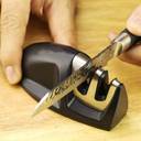 Use tungsten steel and ceramic materials to correspond to rough grinding and fine grinding notches. Just pull it back twice gently and the knife is good as new. Clean knifes sharper with a damp cloth or mild brush, wipe dry. You can safely sharpen the blade without worrying about cutting yourself. knife sharpener tool is small and can be stored in any cabinet in the kitchen. The kitchen knife sharpener is made of stainless steel and ABS plastic, which are durable, have a long service life, and can fully withstand the pressure generated during sharpening.