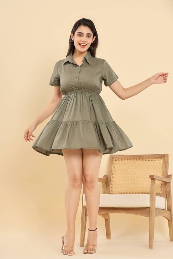 decoris Women Layered Green Knee Length Dress