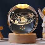 | Other Features | - CLEAR IMAGE - The 3D image was engraved by laser, and it is scaling down at the same proportion of the real planets. Each planet engraved with a name. UNIQUE GIFT - The ball is a perfect gifts for astronomy lovers. You can gift it to your friends, teacher, boyfriend, husband, children. It will be a surprise for them who are astronomy Enthusiast. USB POWER MODE - 3D crystal ball comes with a wooden base and USB cable, portable chargers, output chargers, adapters, and even computers that can be used. QUALITY MATERIALS - Made with K9 Crystal, Making the Ball More Transparent and Glossier, Names of Planets Etched in the Glass Ball are Clear, Beautiful Stars are around the Planets. HOME & OFFICE DECOR - Can Be Used As A Beautiful Decoration For Your Home, Suitable For Your Bedroom, Dormitory, Living Room, Study, Baby Room, Children Room, Office, Etc.