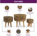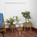DecorTwist Handmade Seagrass Jute Rope Planter Natural Plant Basket with Stand Set of 3 Plant Container Set (Wood)