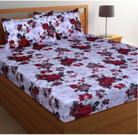 Decorum Microfiber Double Flat 144 TC Printed Bedsheet (Pack of 1, Red)