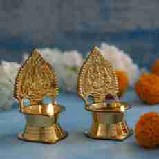 Brass Kamakshi Devi Diya (Medium) | Diya for Pooja Brass (Pack of 2) Table Diya