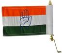 DECTEMS Congress Party Flag with Golden Metal Rod Rectangle Car Window Flag  (Cotton, Pack of 1)