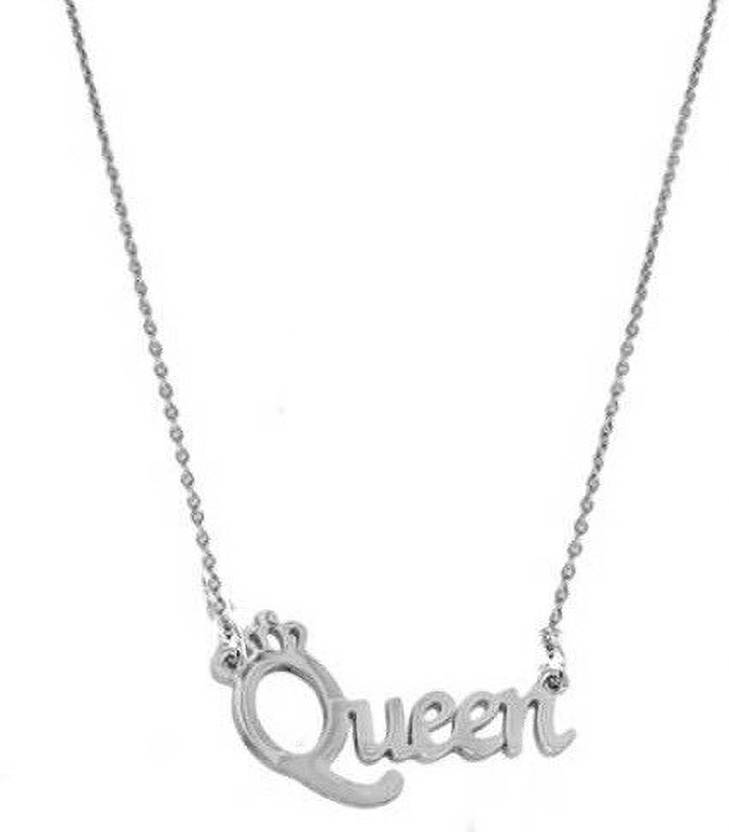Silver Color Fancy & Stylish Trending l Metal Stainless Steel Queen Name Letter Locket Pendant Necklace With Chain For Women's And Girl's Gift Jewellery Set Silver Stainless Steel Pendant Set