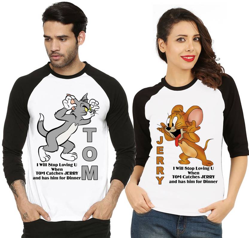 DEE LEAF Printed Couple Round Neck Black, White T-Shirt