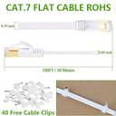 Cat 7 Ethernet Cable 100 ft High Speed, Long Wire Internet Cable RJ45 Connectors, Flat Shielded LAN Cable Network Cable Patch Cord with Clips, Faster Than Cat6 Cat5e for PS5, Router, Modem, White