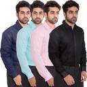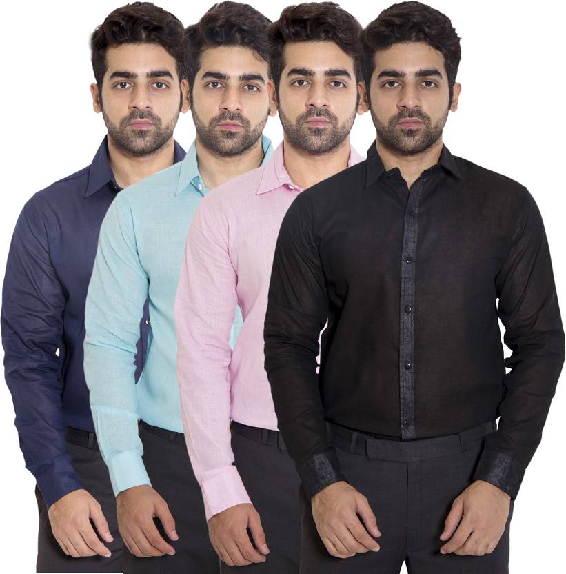 Revamp your wardrobe with some fresh and exclusive wear apparels from the house of deekshavastra. Featuring a smart full sleeve navy blue, sky blue, pink, black colored cotton shirt with casual and pretty solid pattern that makes it a perfect casual pick. Perfect pick to add in your casual wear collection, team with smart pair of bottoms to complete your look. The product packaging contains 4 shirts.