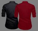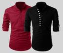 DEELMO Men Self Design Straight Kurta (Red, Black)