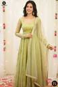 Available in a graceful pista green color, this Anarkali suit brings a stylish, royal, and contemporary touch to your party wear collection.