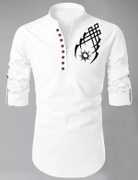 DIMMY Men Printed Straight Kurta (Light Blue)
