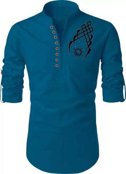 DEEMOON Men Printed Straight Kurta (Multicolor)