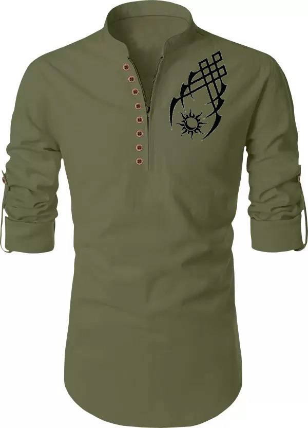 DEEMOON Men Printed Cotton Blend Straight Kurta  (Green)