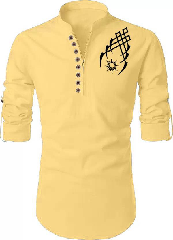 DEEMOON Men Printed Straight Kurta (Yellow)