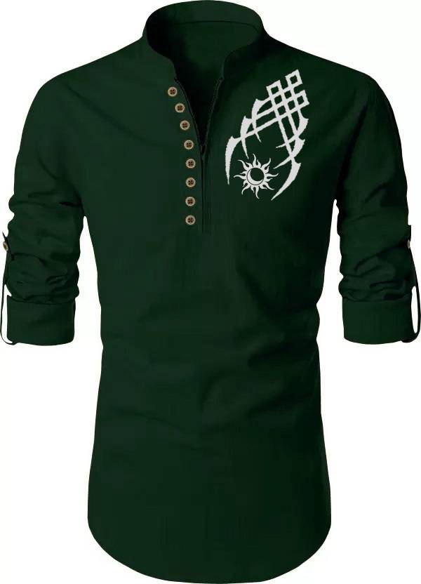 DEEMOON Men Printed Cotton Blend Straight Kurta  (Dark Green)