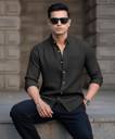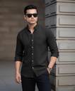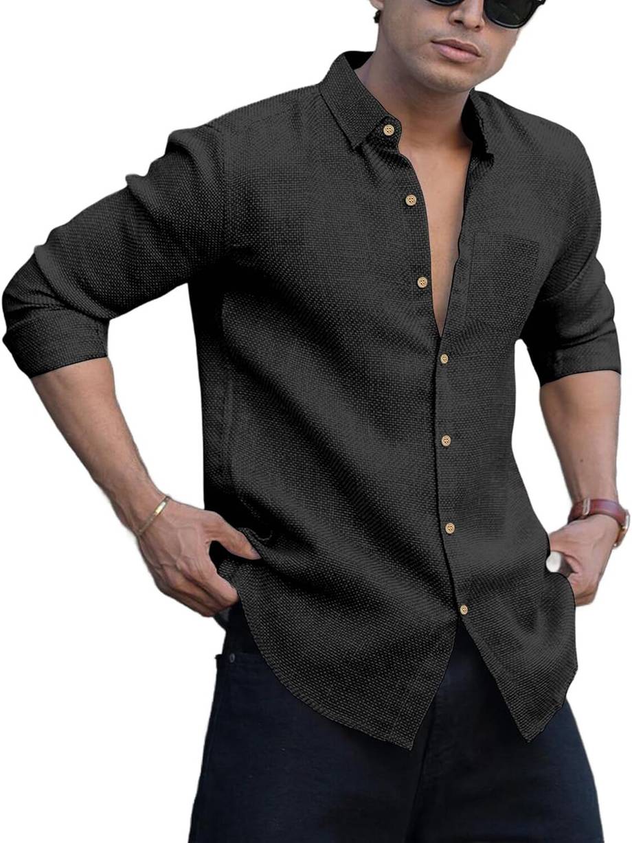 DEEMOON Men Solid Casual Black Shirt