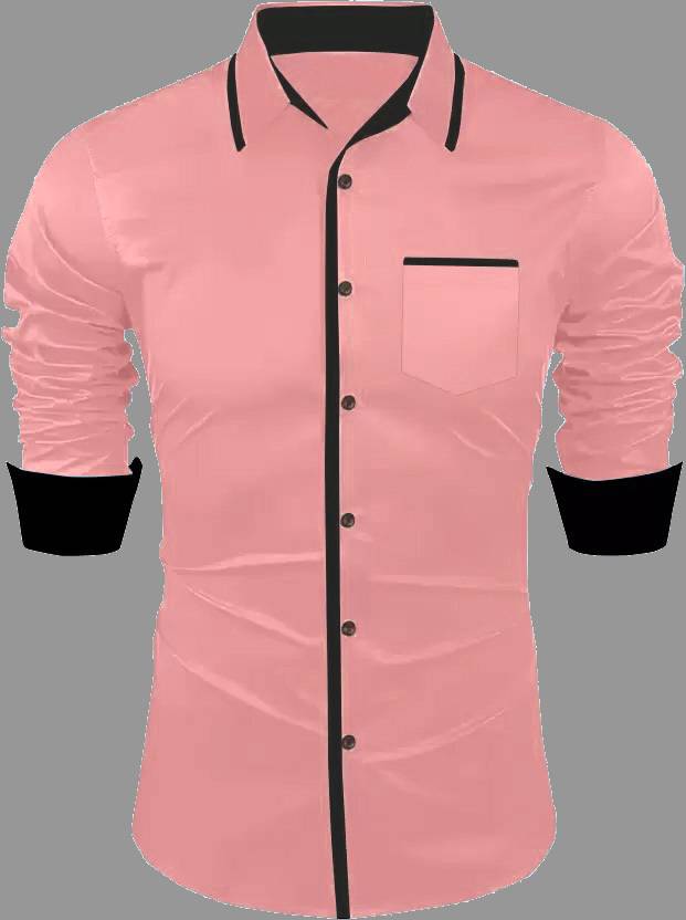 DEEMOON Men Solid Casual Orange Shirt