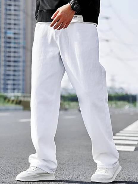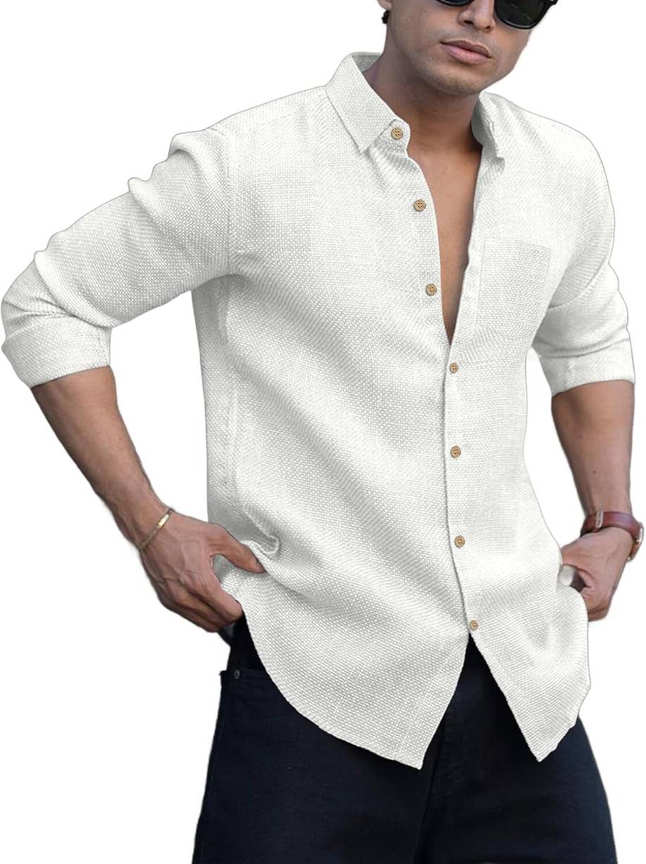 DEEMOON Men Solid Casual White Shirt