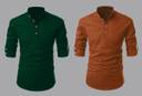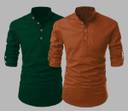 DEEMOON Men Solid Flared Kurta (Green, Orange)
