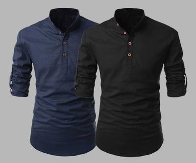 Pack of 2 Men Solid Cotton Ble...