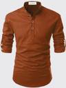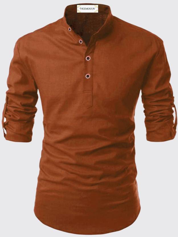 DEEMOON Men Solid Cotton Blend Straight Kurta  (Orange)