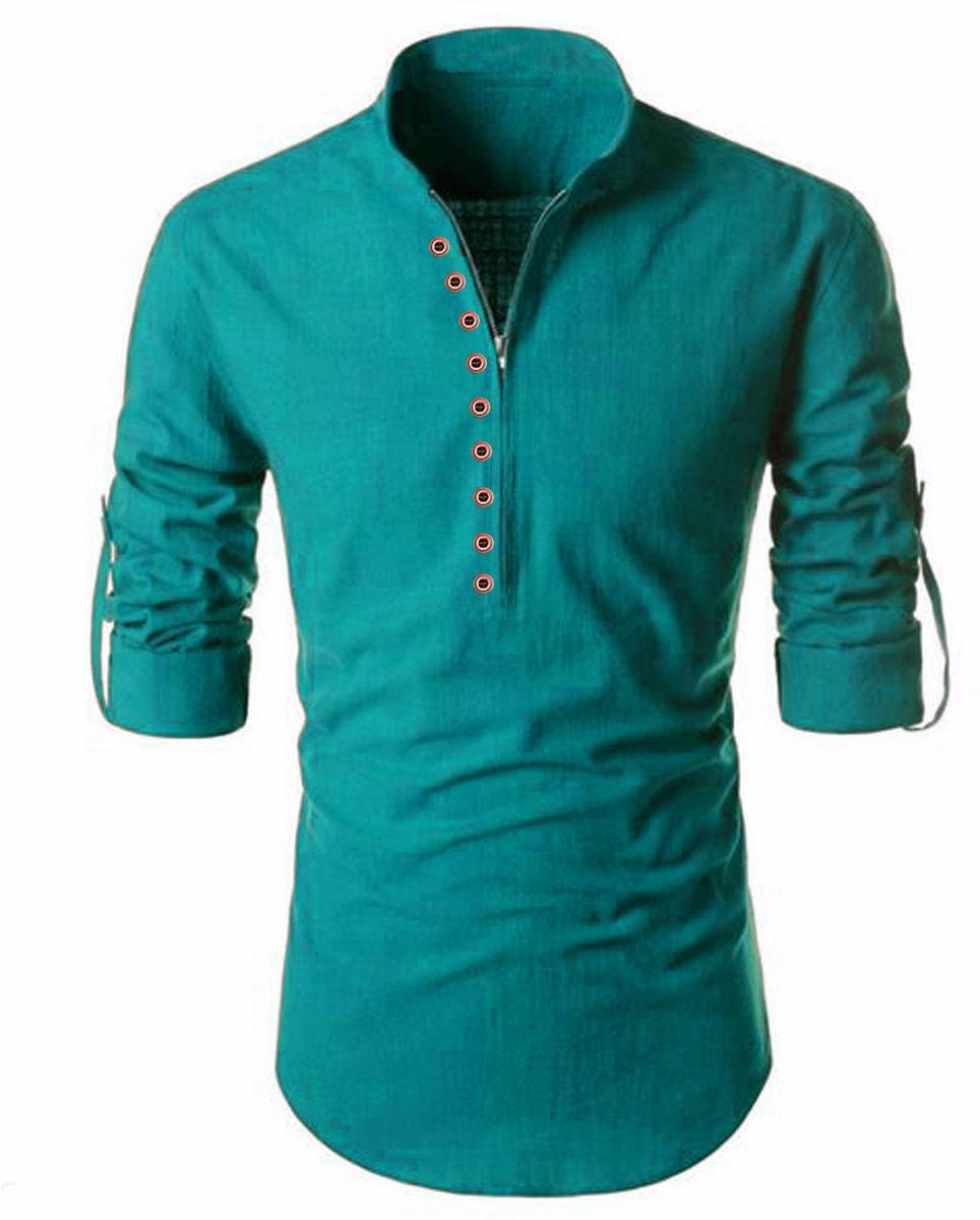 DIGIMI Men Solid Cotton Blend Straight Kurta (Green)