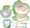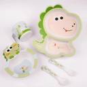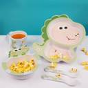 Deepashri Baby Feeding Dinosaur Theme Dinner Set for Kids (Plate, Bowl, Cup, Spoon & Fork) - 100% Safe Bamboo Fiber (Multicolor)