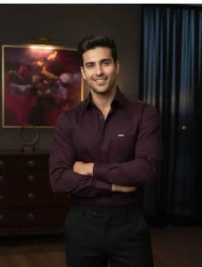 Men Regular Fit Solid Cut Away Collar Casual Shirt