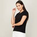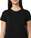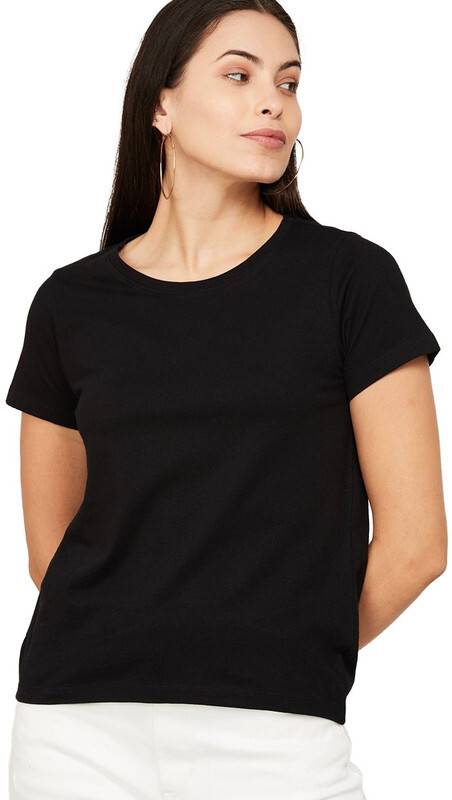 Women Solid Round Neck Cotton Blend Black T-Shirt