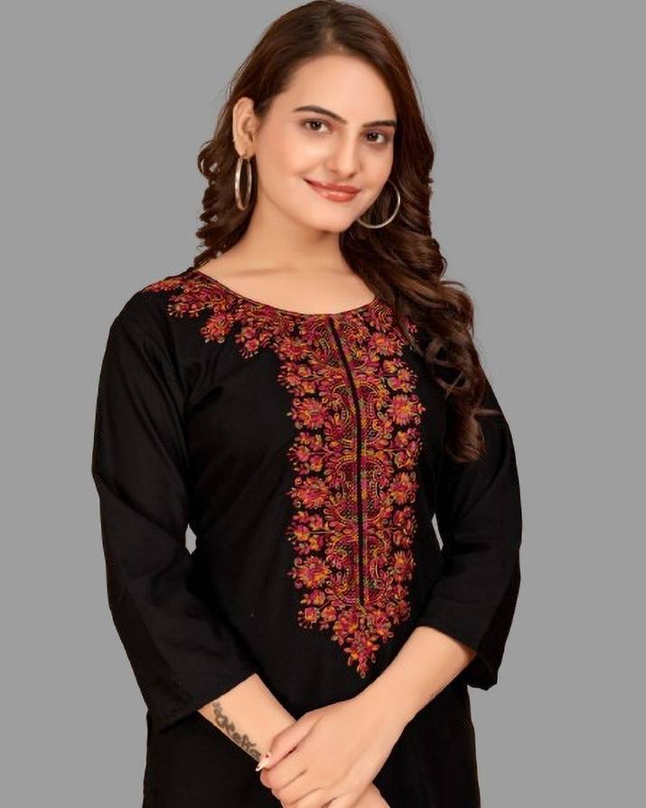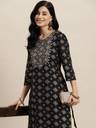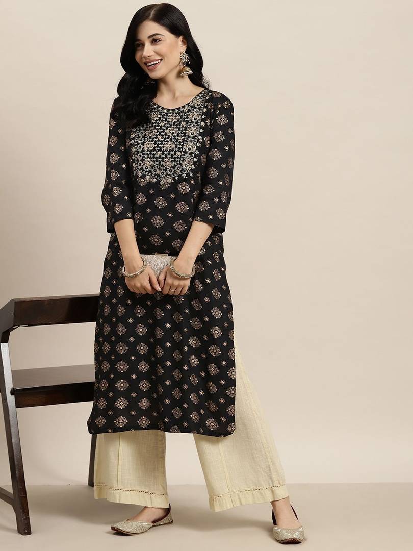 Deepyog Women Printed Straight Kurta (Black)